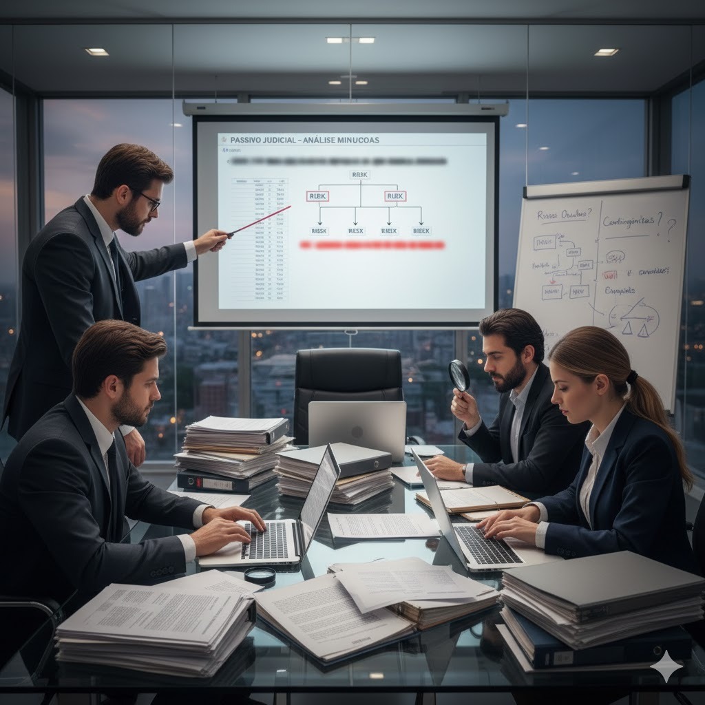 Realizamos uma análise minuciosa de todo o passivo judicial, identificando riscos ocultos, oportunidades de economia e pontos de melhoria na gestão jurídica.